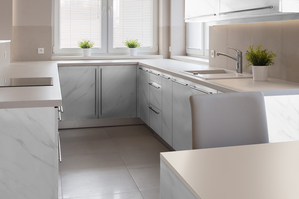 Bestel een keukenwrap staal en beleef de kleur en structuur in uw eigen ruimte.